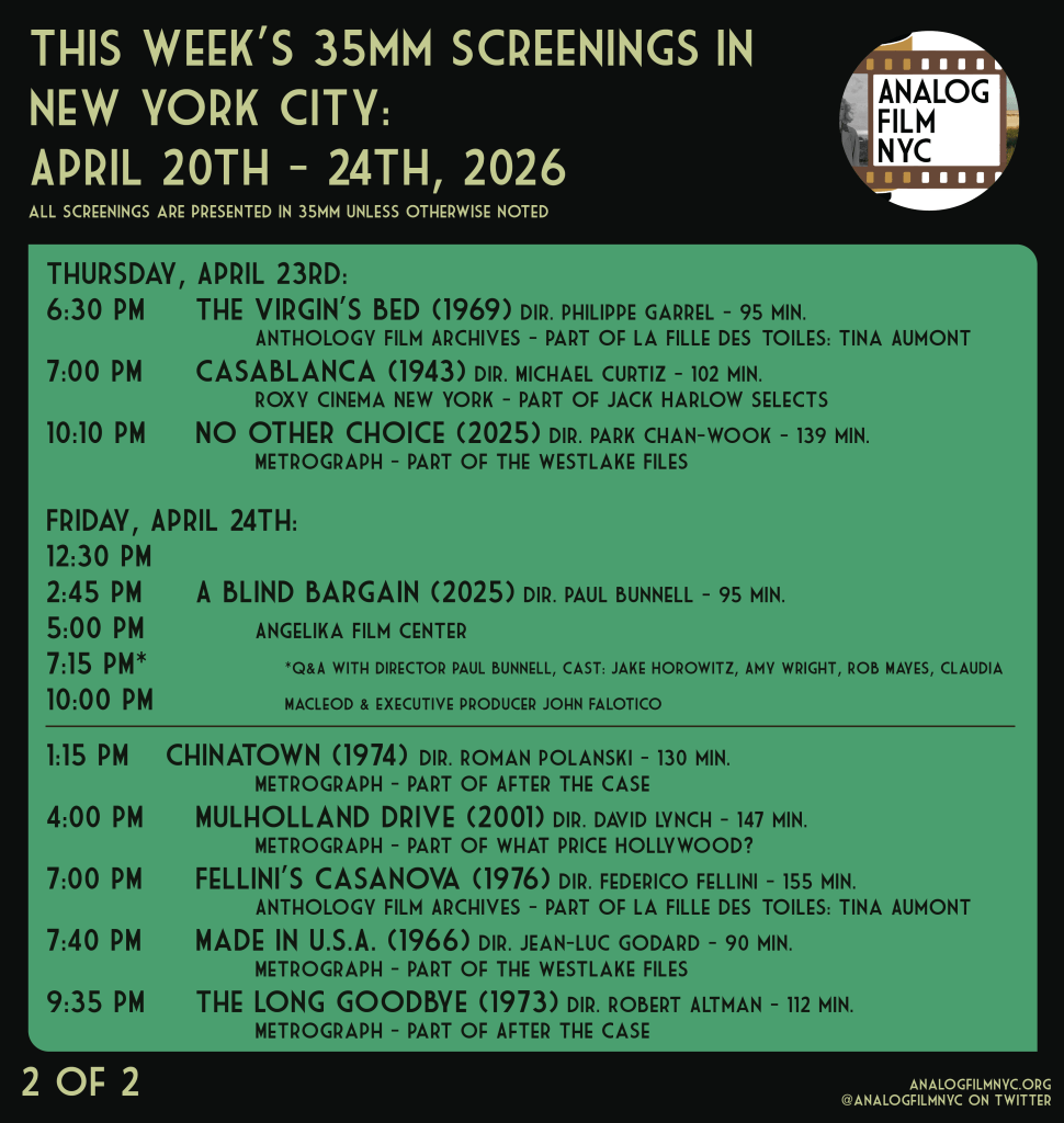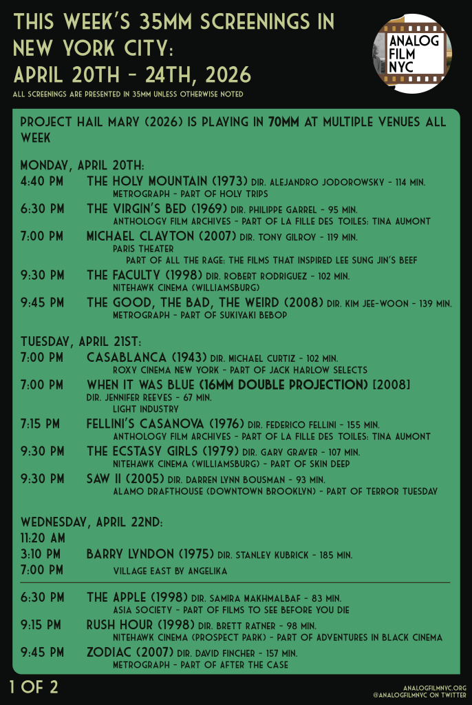 Tina Aumont at Anthology Film Archives, The Faculty at Nitehawk Cinemas, Jack Harlow Selects at the Roxy Cinema, Barry Lyndon at Village East by Angelika, The Apple at Asia Society, and more.
