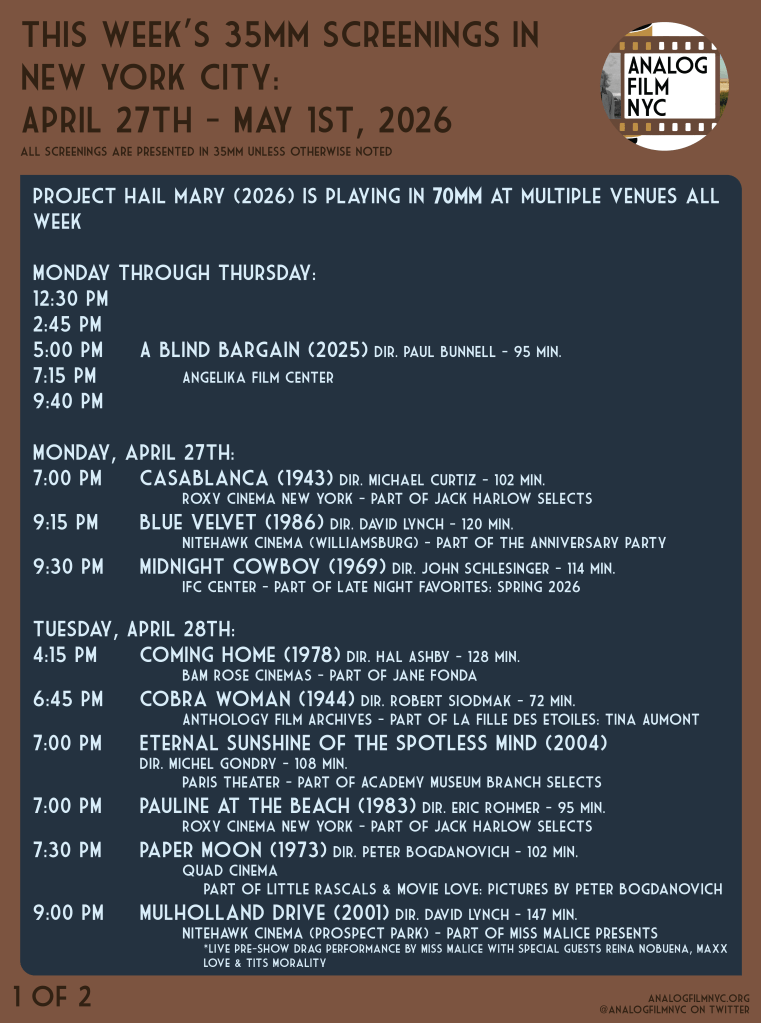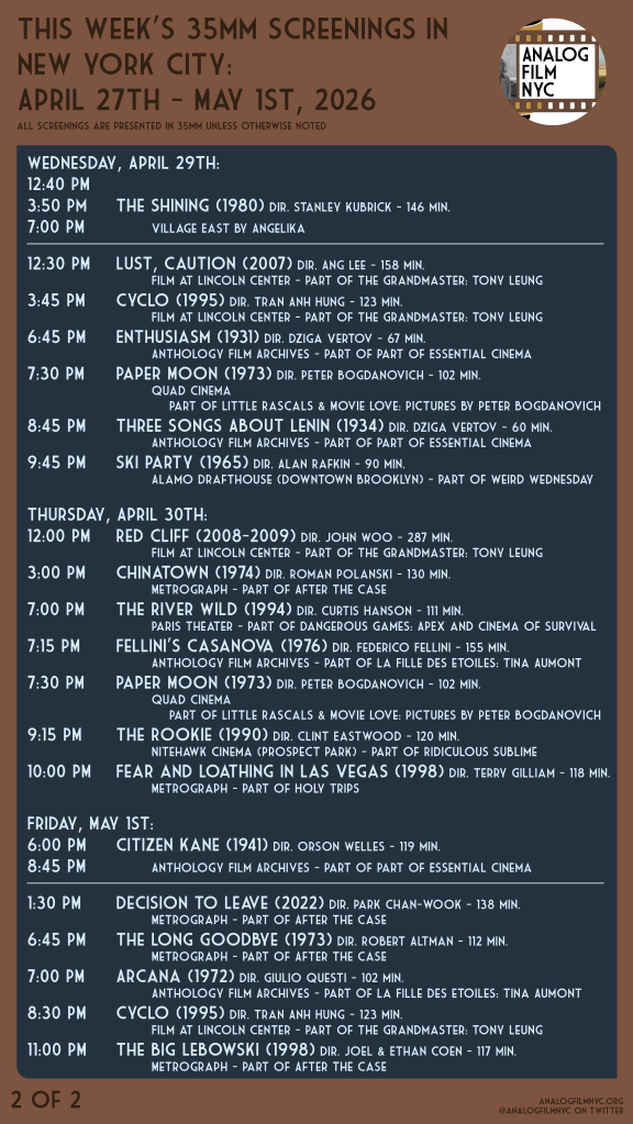 Upcoming celluloid film screenings in New York City