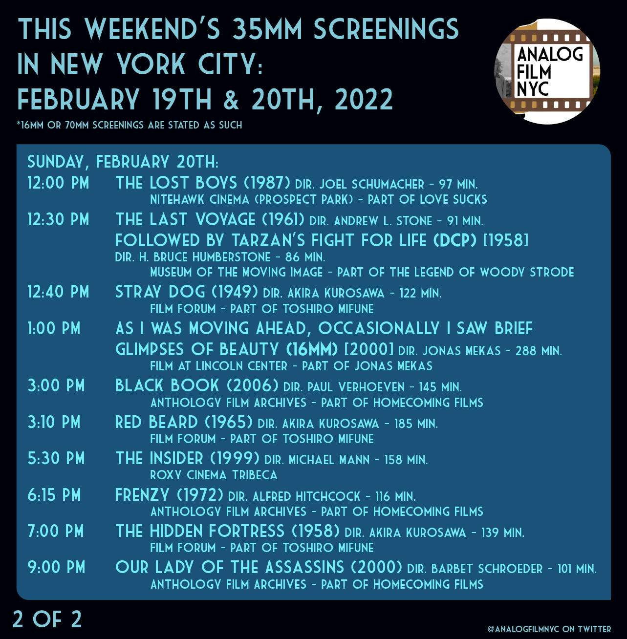 Upcoming celluloid film screenings in New York City
