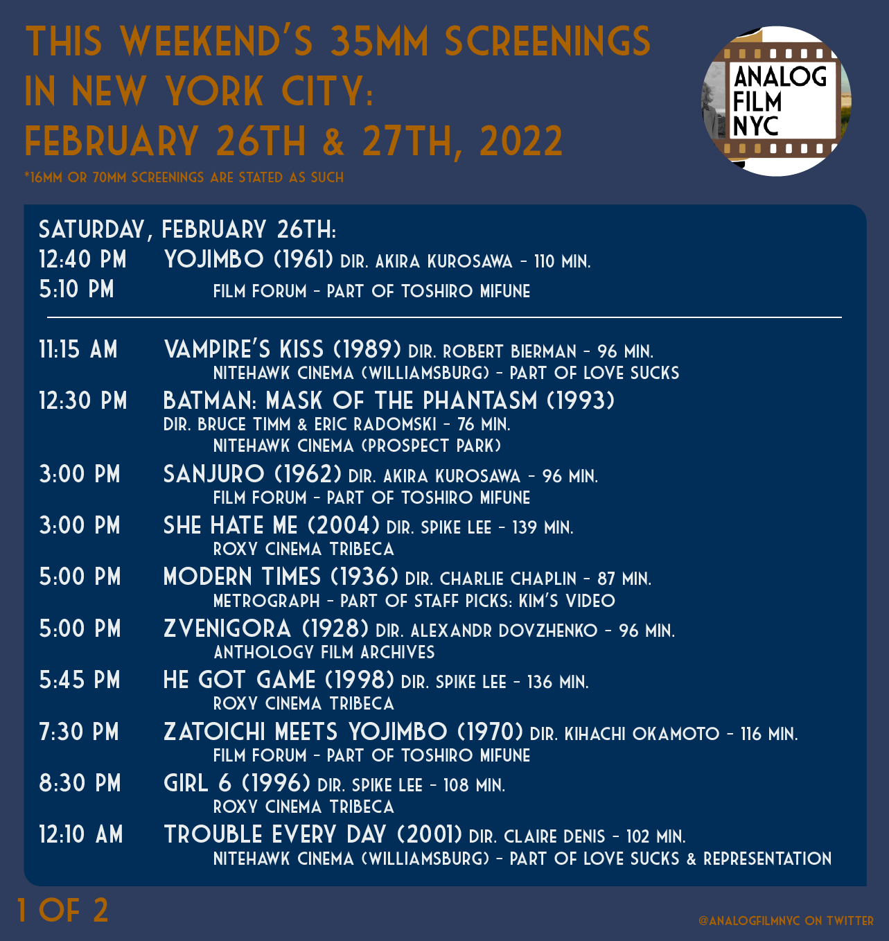 Upcoming celluloid film screenings in New York City