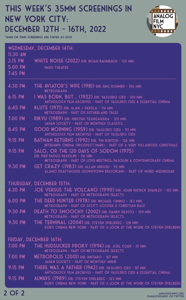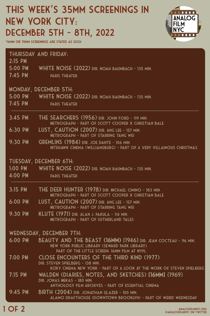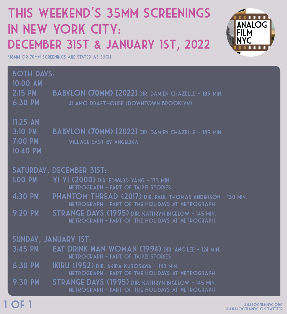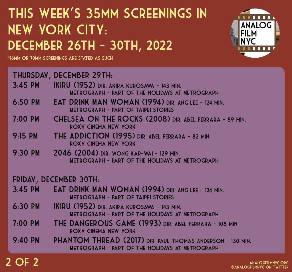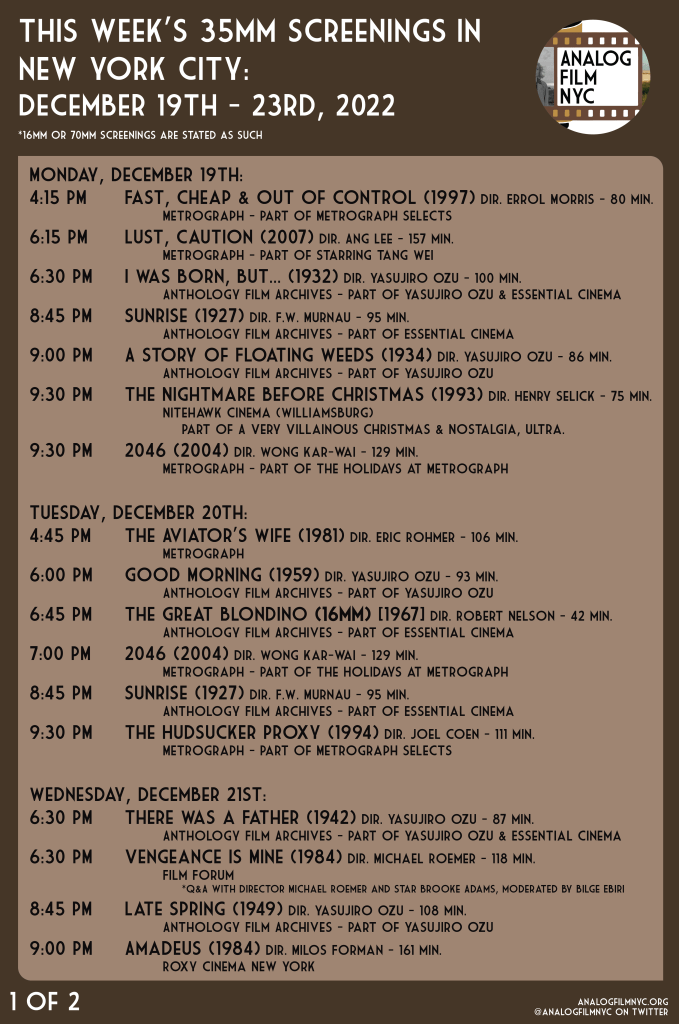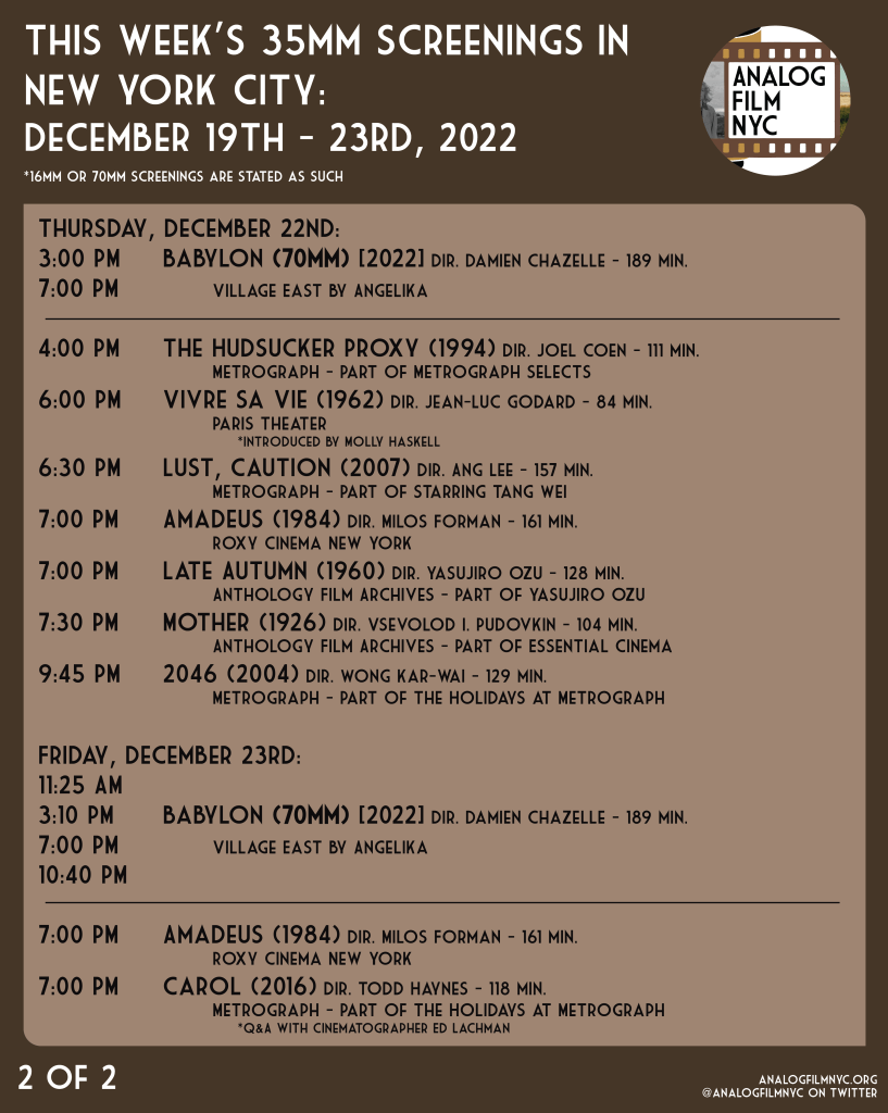 Upcoming celluloid film screenings in New York City