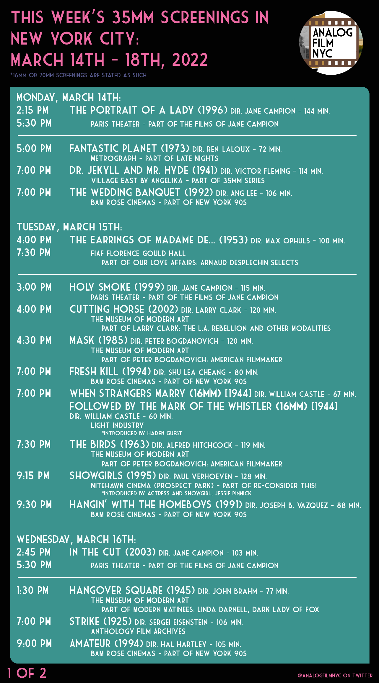 Upcoming celluloid film screenings in New York City