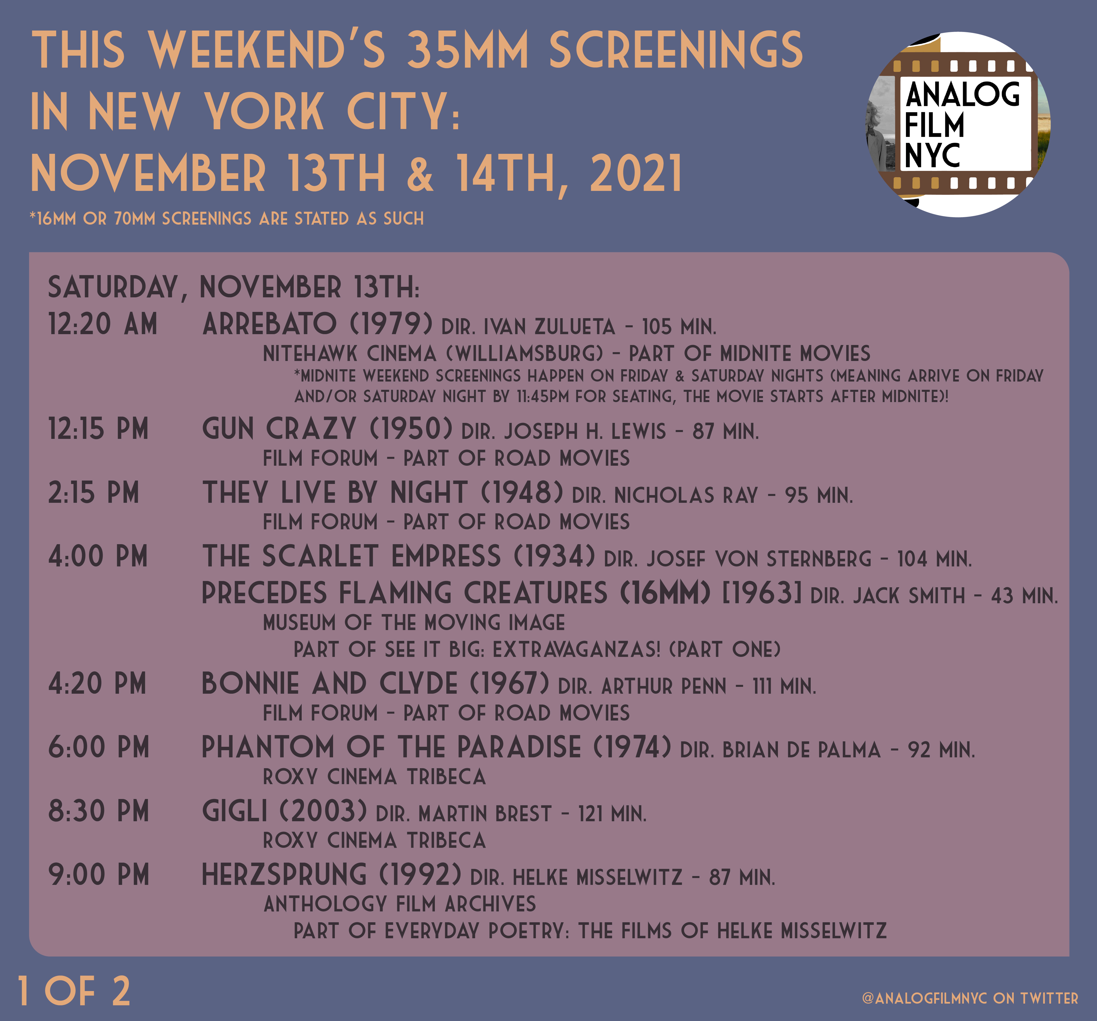 Upcoming celluloid film screenings in New York City