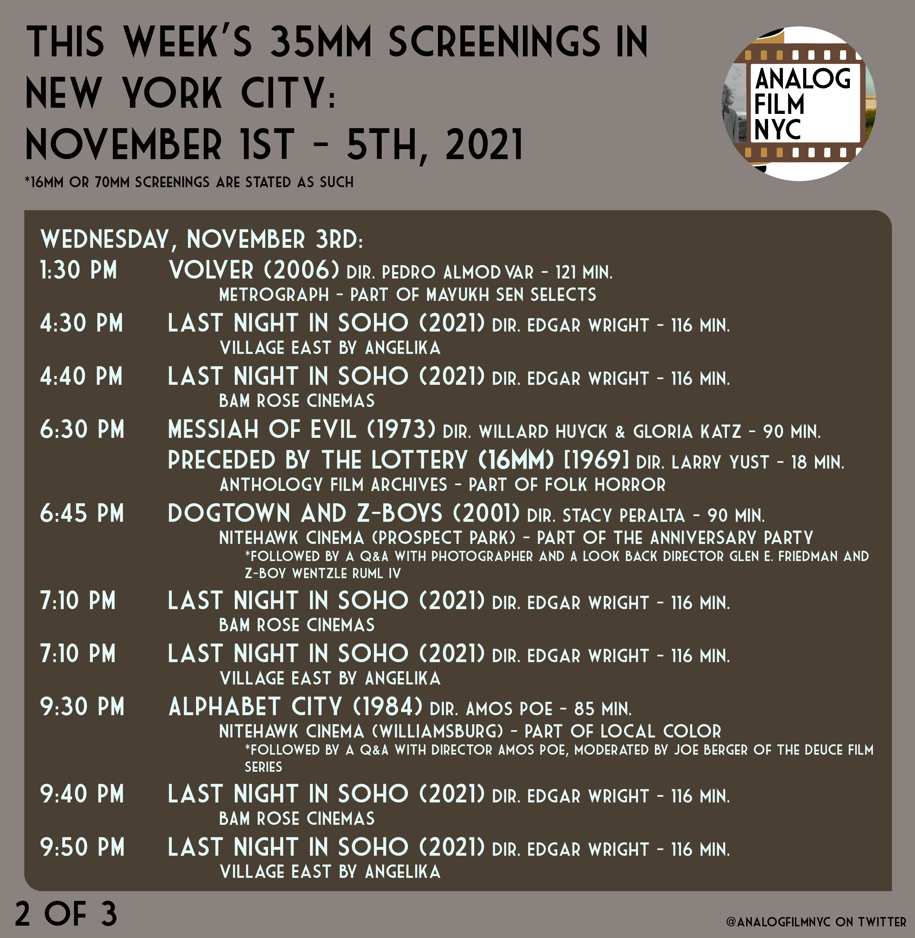Upcoming celluloid film screenings in New York City