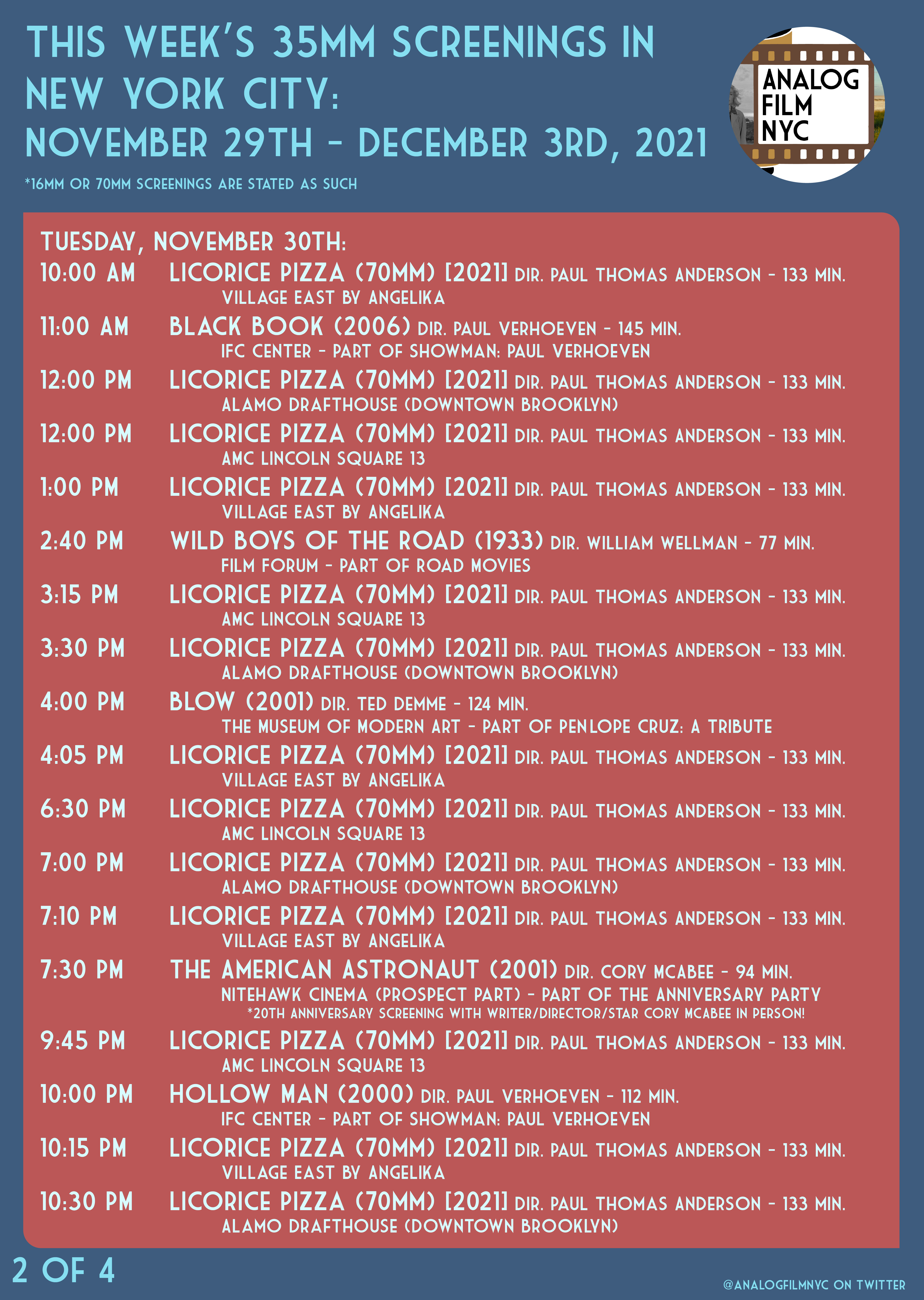 Upcoming celluloid film screenings in New York City