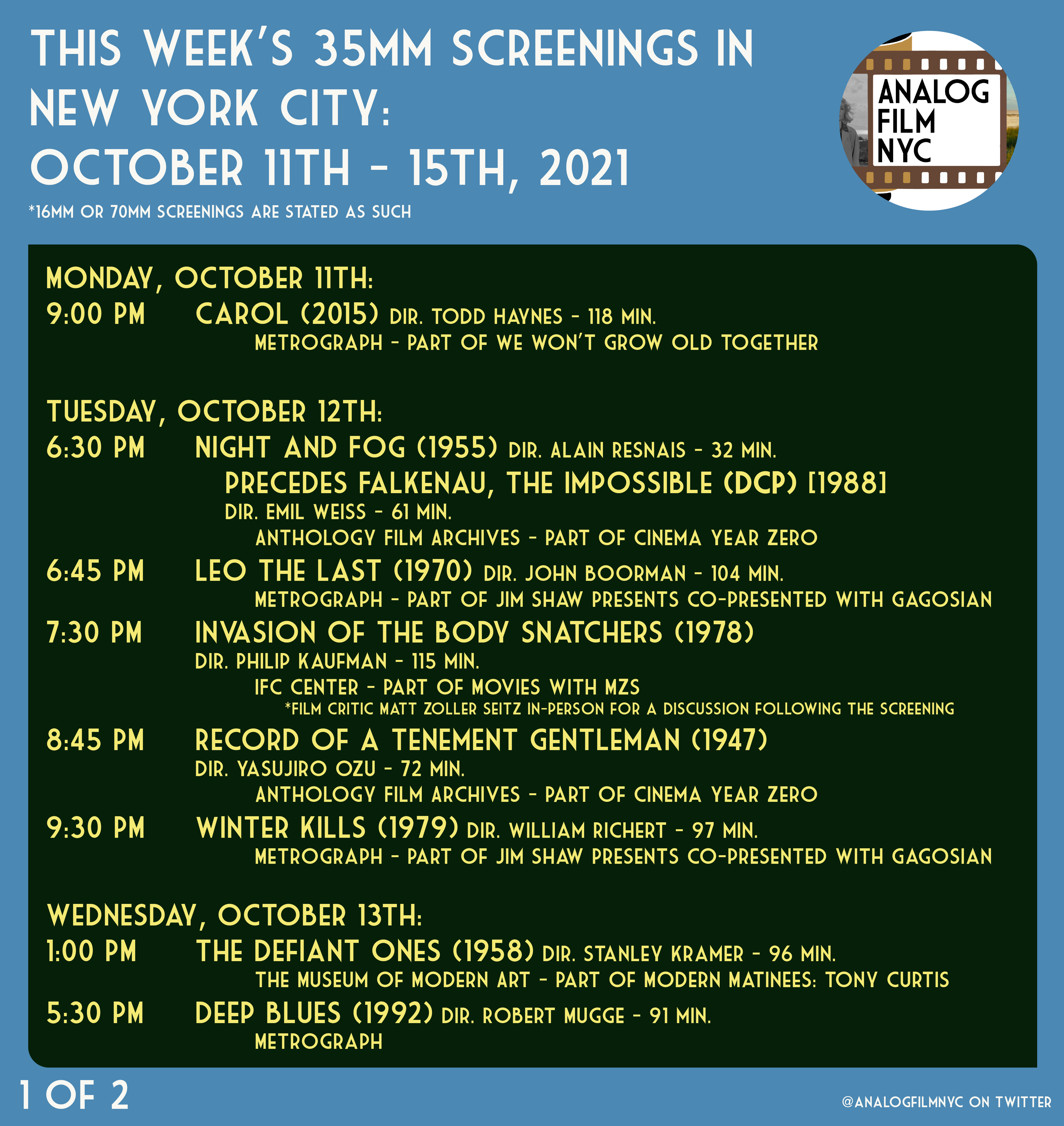 Upcoming celluloid film screenings in New York City