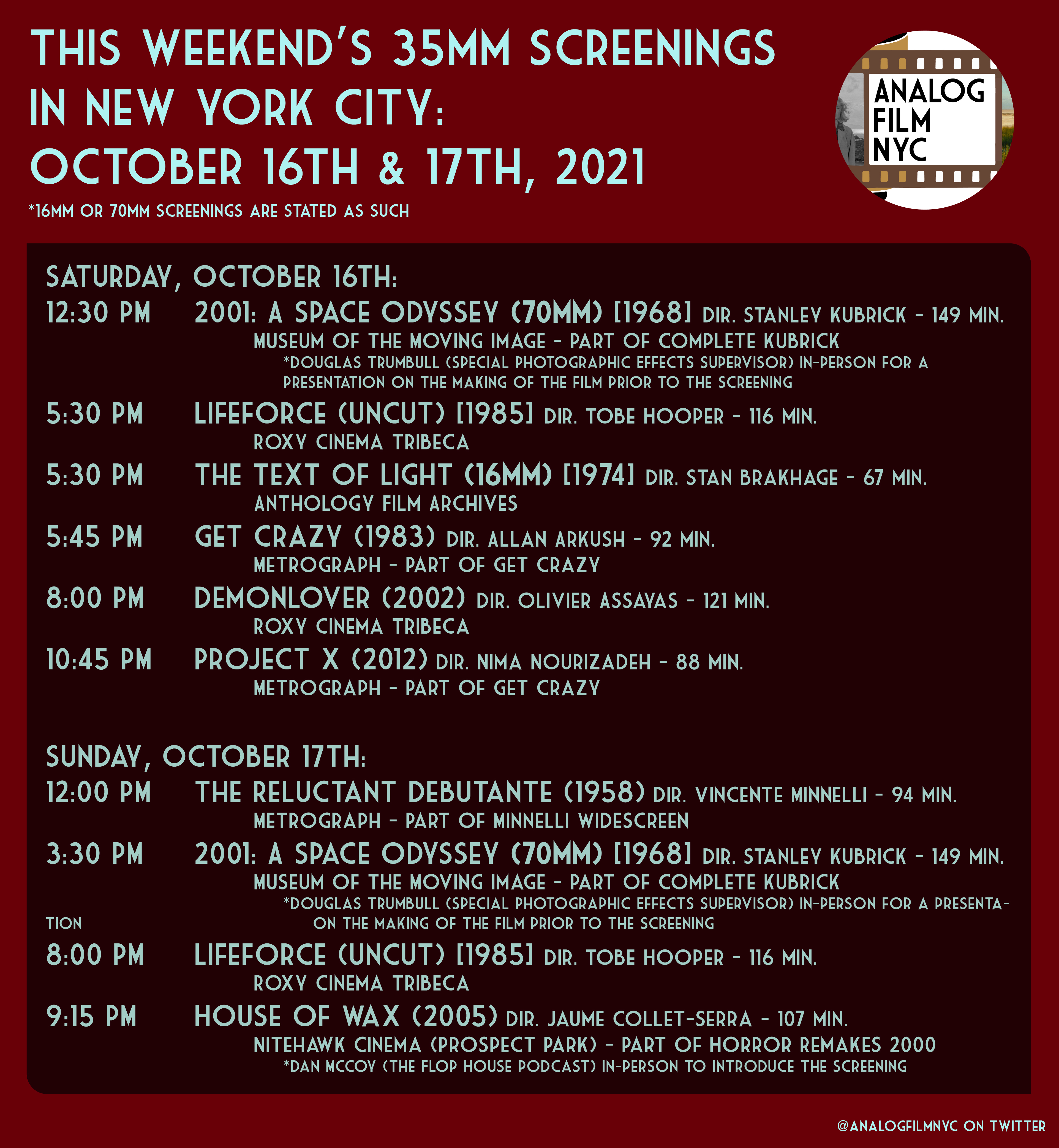 Upcoming celluloid film screenings in New York City