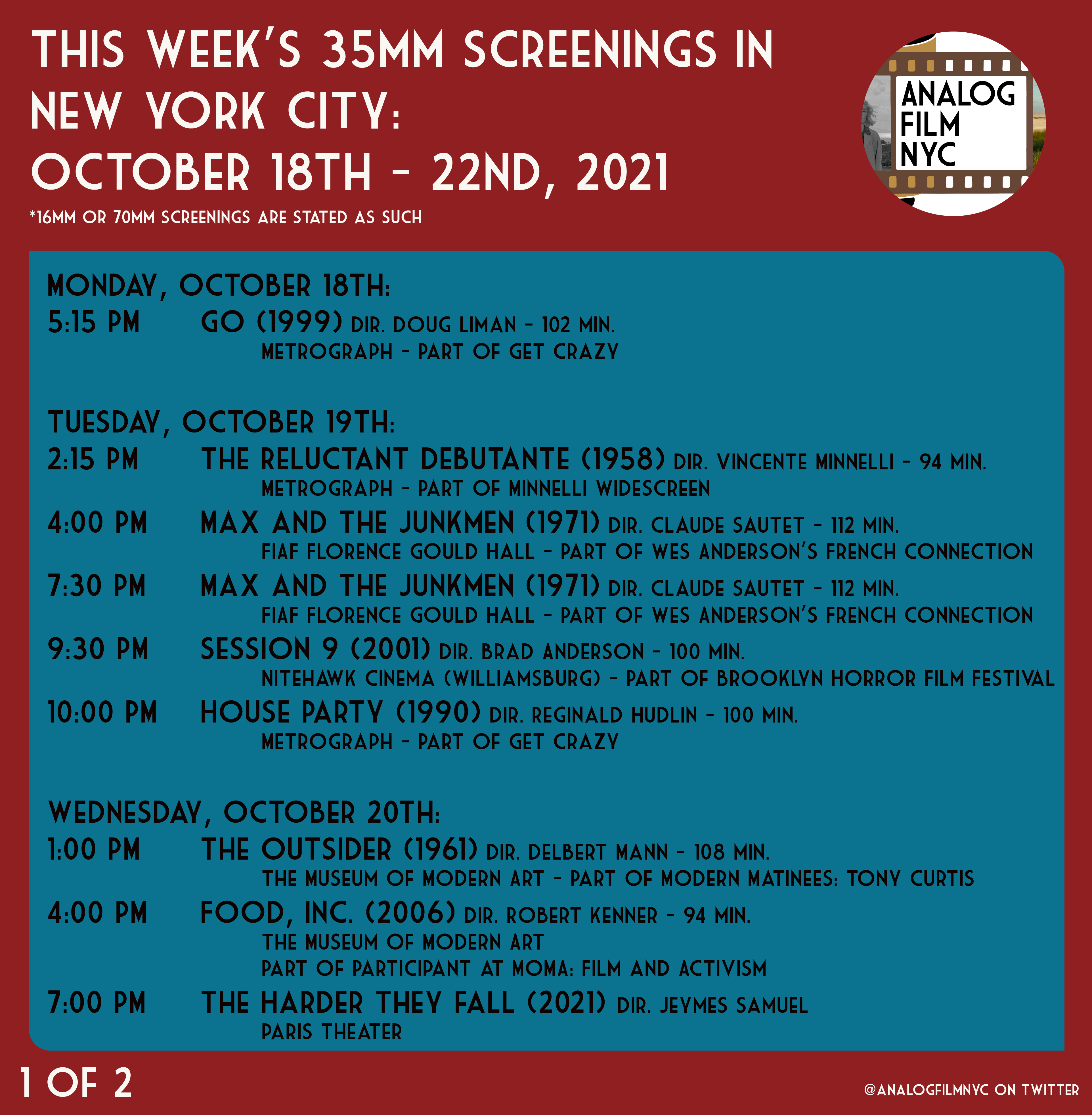 Upcoming celluloid film screenings in New York City