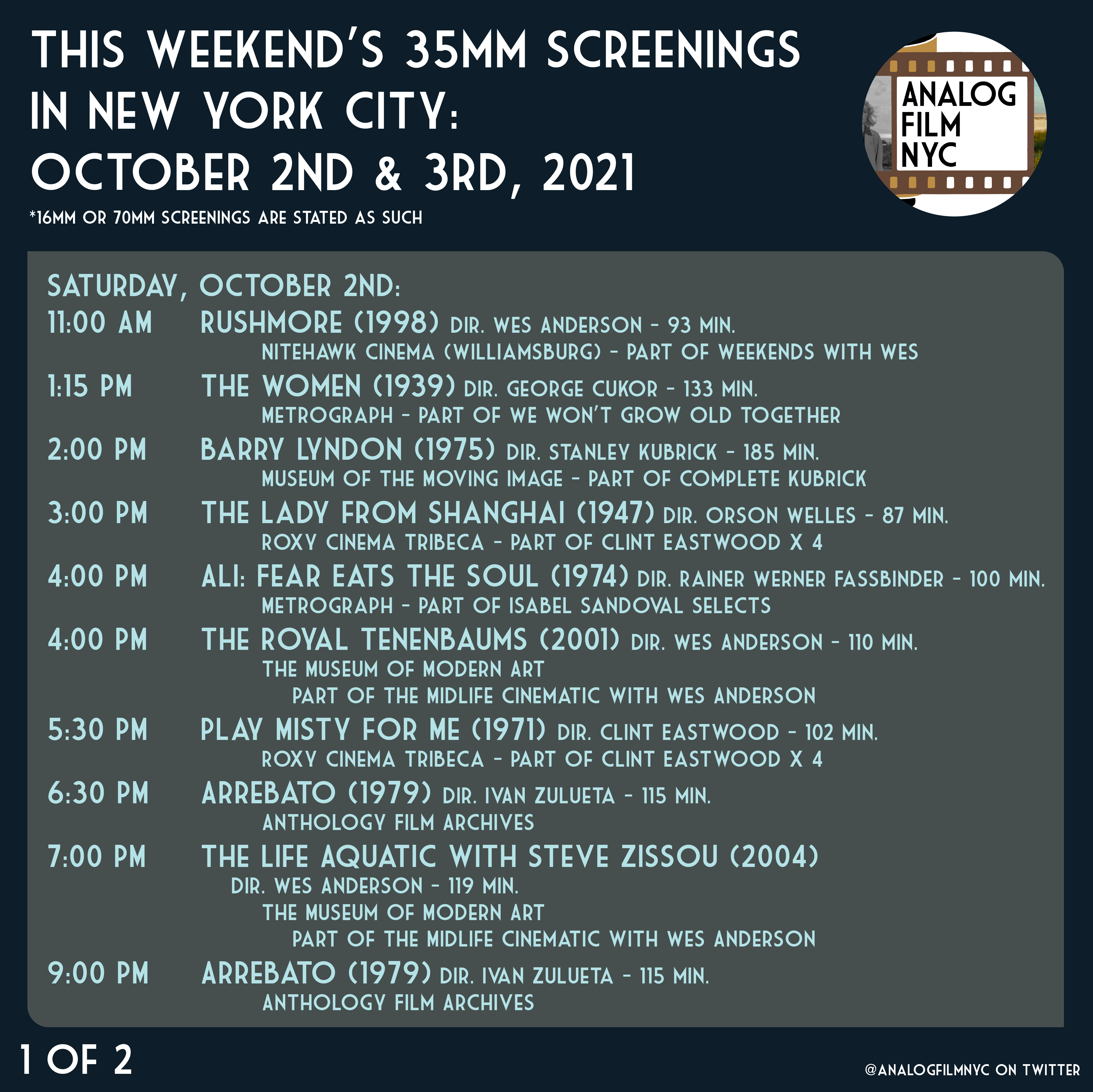 Upcoming celluloid film screenings in New York City