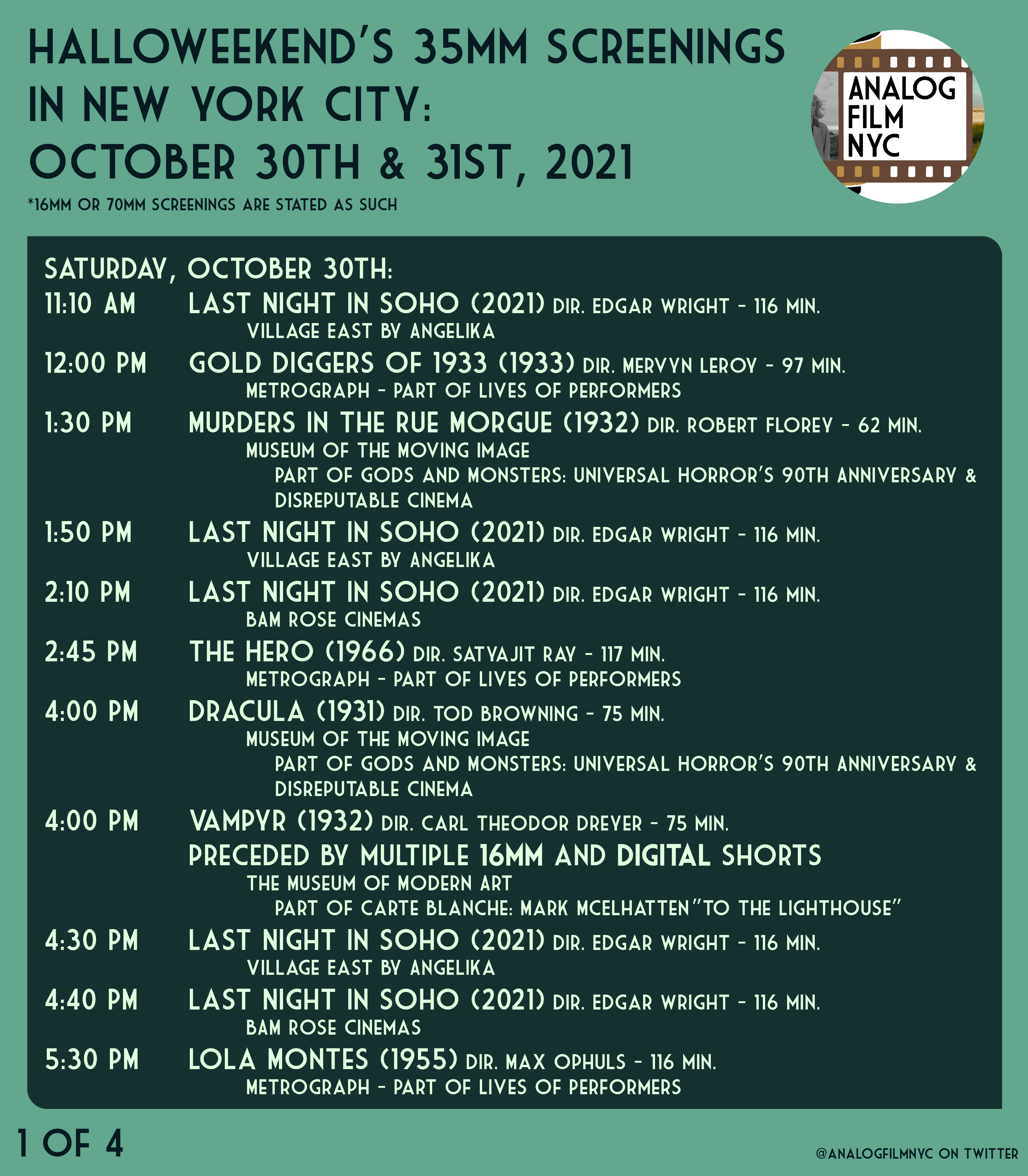 Upcoming celluloid film screenings in New York City