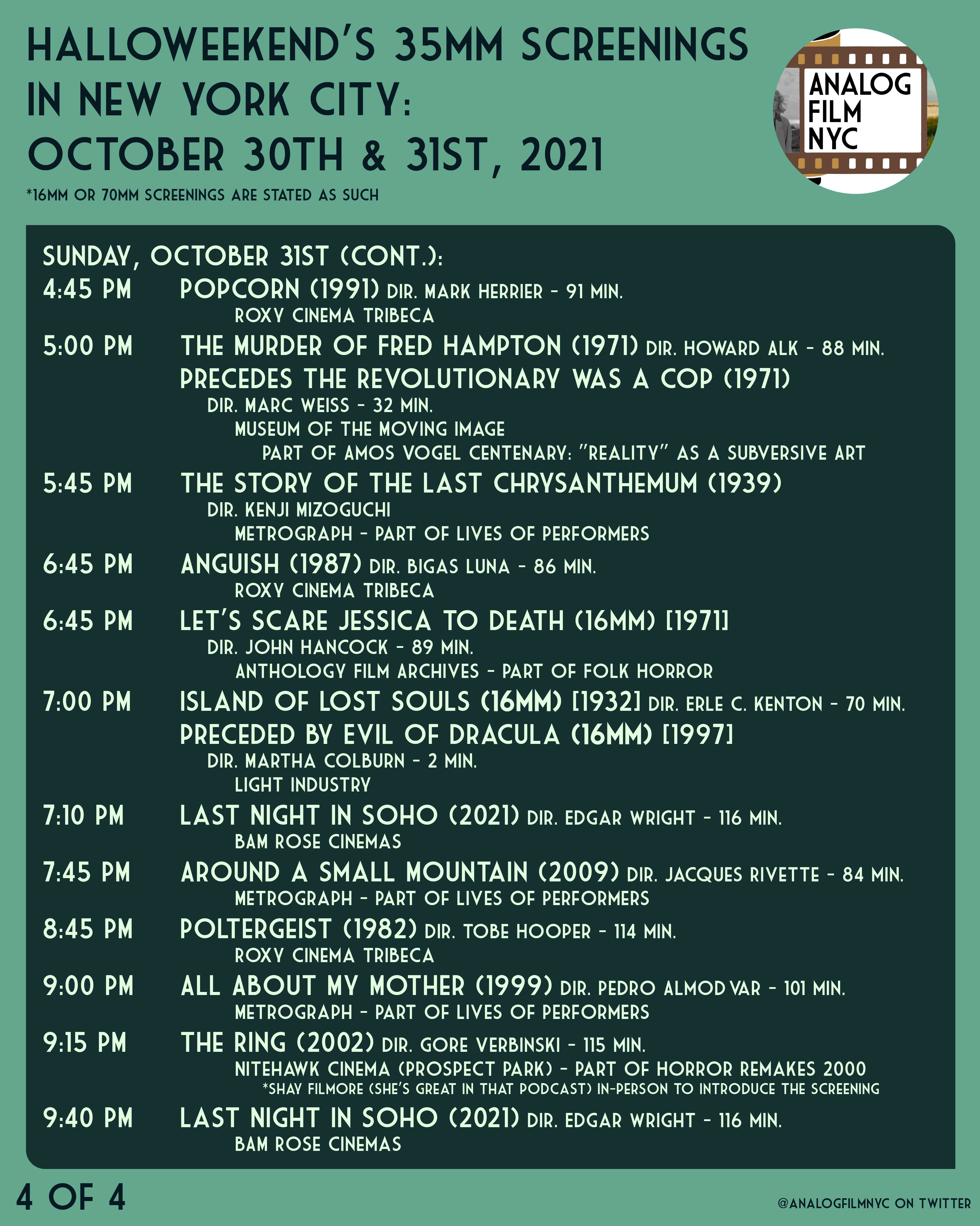 Upcoming celluloid film screenings in New York City