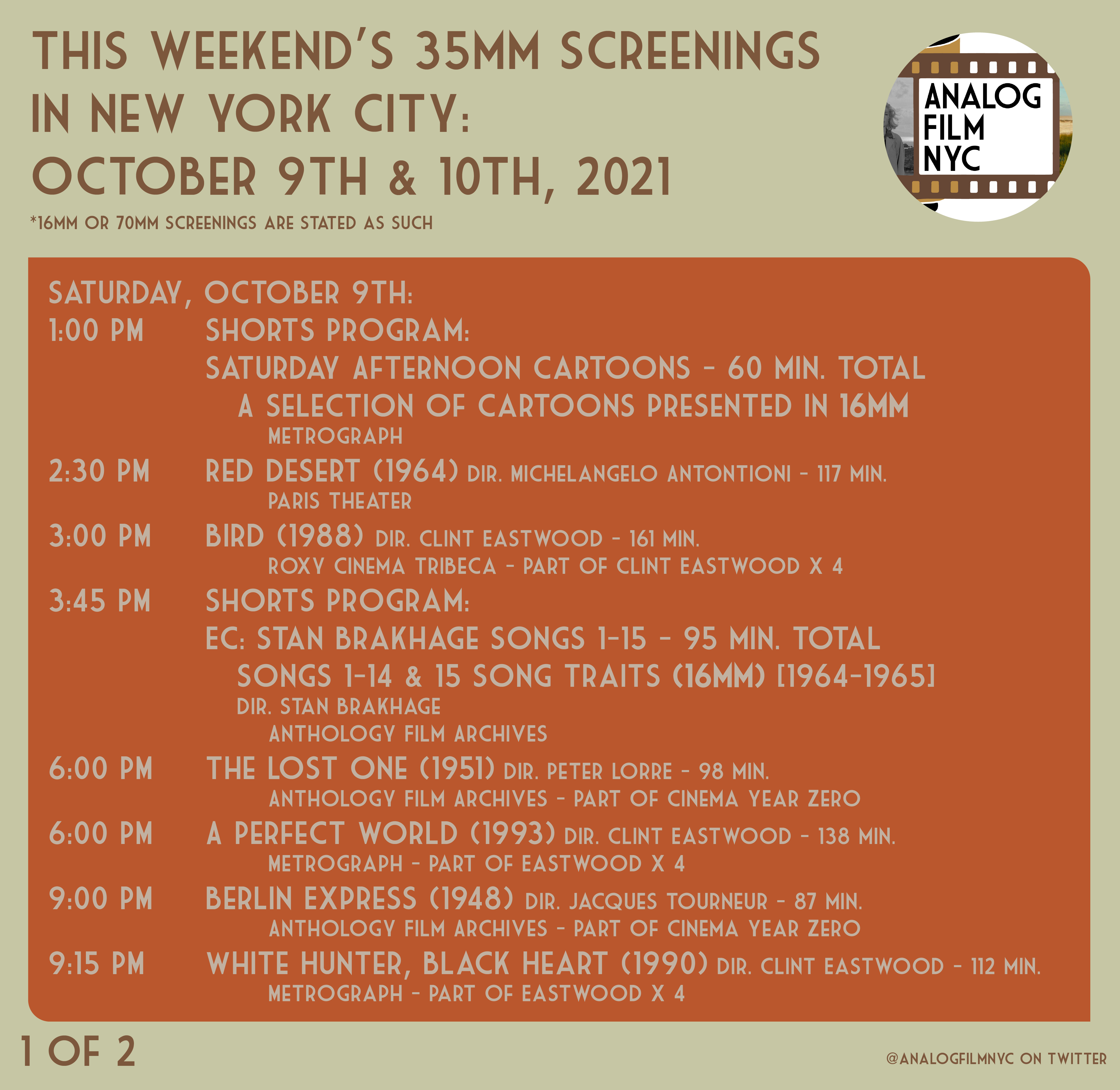 Upcoming celluloid film screenings in New York City