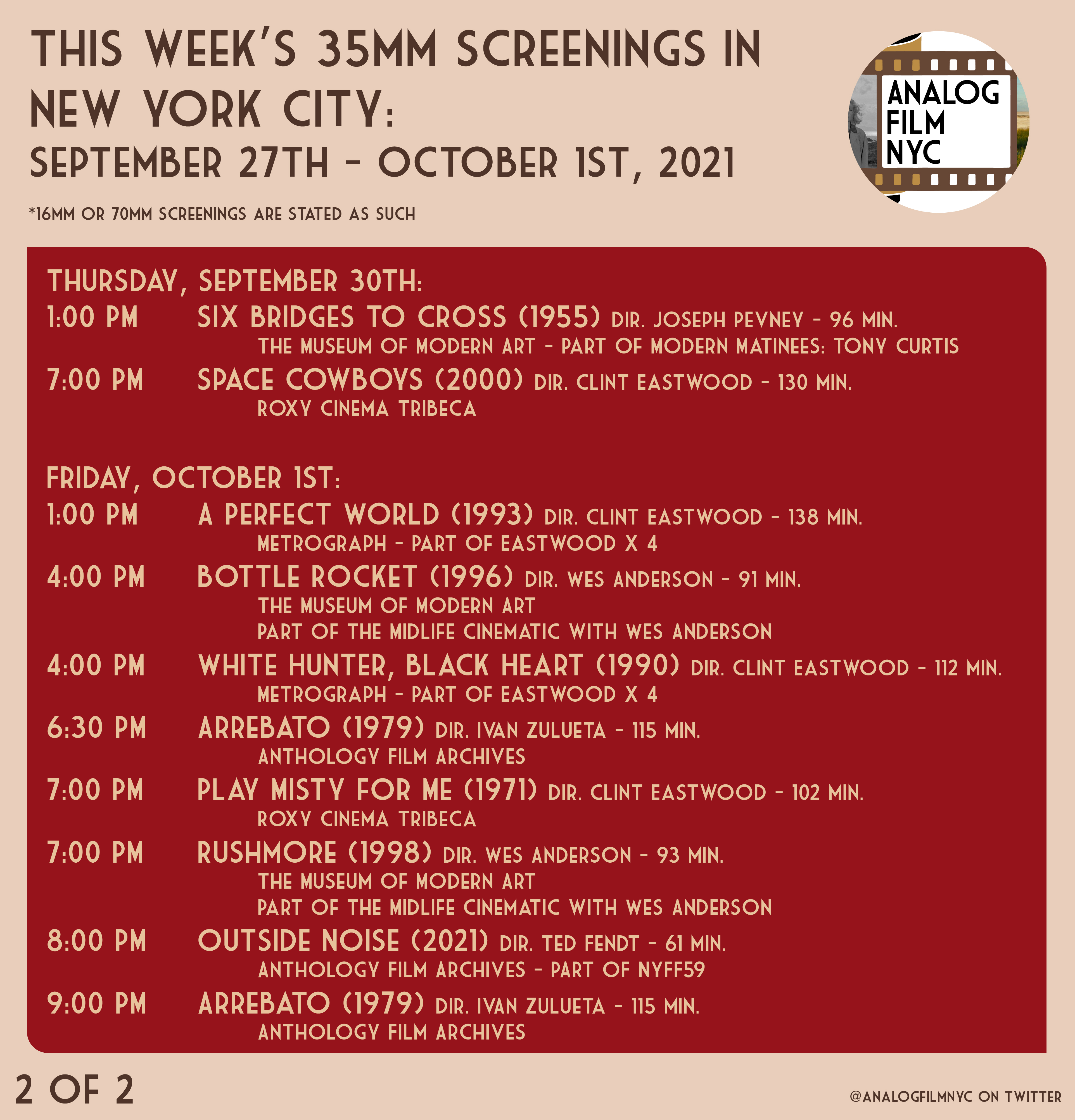 Upcoming celluloid film screenings in New York City